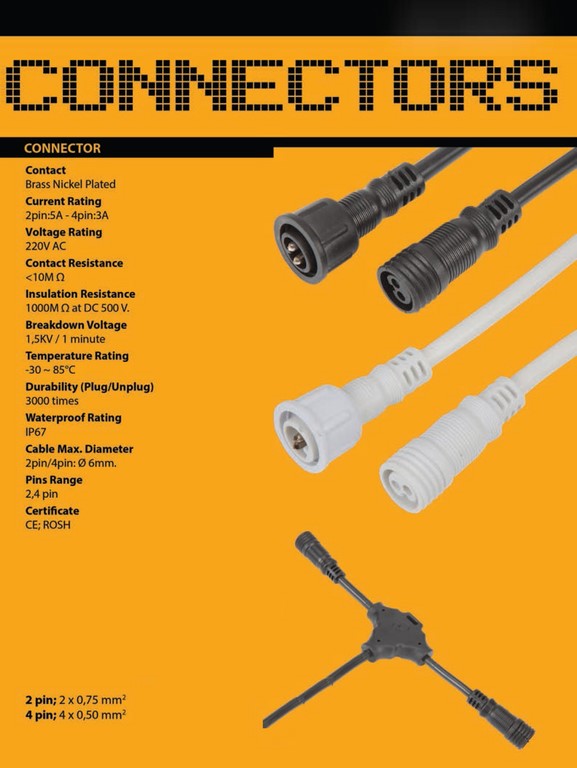 Tüm ürün seçeneklerimizde opsiyonel olarak sunulan konektör seçeneği, SLA serisi ışıklı bantlarda standart olarak gelmektedir.
